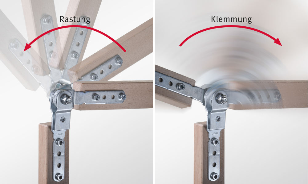 Kombination aus Rastung und stufenloser Klemmung